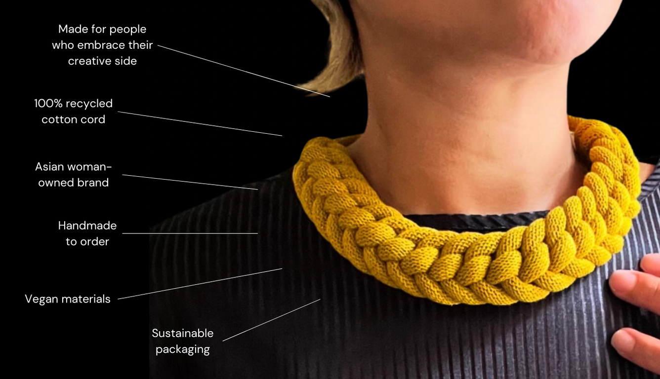 Textile jewelry made from natural & sustainable materials.